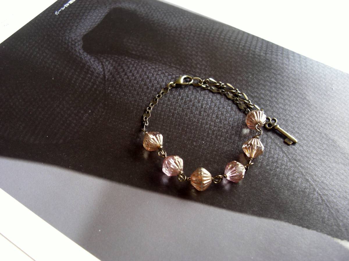 秋色・デッサン・・シリーズです♪ロマンチック気分で・・神秘的なチェコビーズのブレスレットです♪繊細なデザインとシックな色合いが素敵なチェコビーズを シンプルなデザインに仕立ててさりげなくロマンチックな表情です♪9ミリ位のチェコビーズにデザインチェーンを合わせました♪長さは全長23センチ位で調 節自由です♪お揃いのネックレス、ピアスも出品しています♪シンプルで 飽きのこないいつまでも着けられるデザ インを考えて作りました!ハンドメイドをご理解頂いてノークレーム、ノー リターンでお願いします