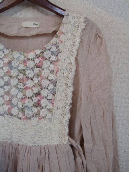 | 商品紹介 | 胸元の花柄とレースの2重デザインが可愛いです。 カラーは若干ピンクが入ったベージュカラーです。 100%コットン |