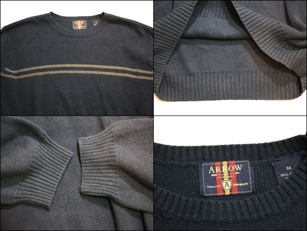 【M】 ARROW アロー コットン ニット セーター QUALITY DURABILITY ネイビー 紺 ビンテージ ヴィンテージ USA 古着 オールド GC147