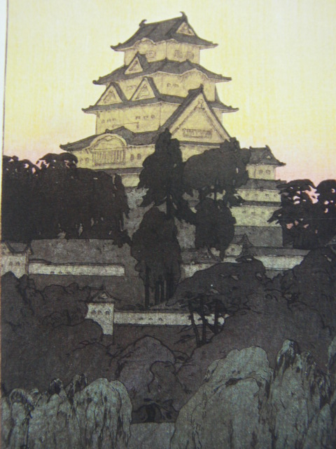 吉田博、【姫路城 夕】、希少画集画、高級新品額・額装付、状態美麗、送料無料