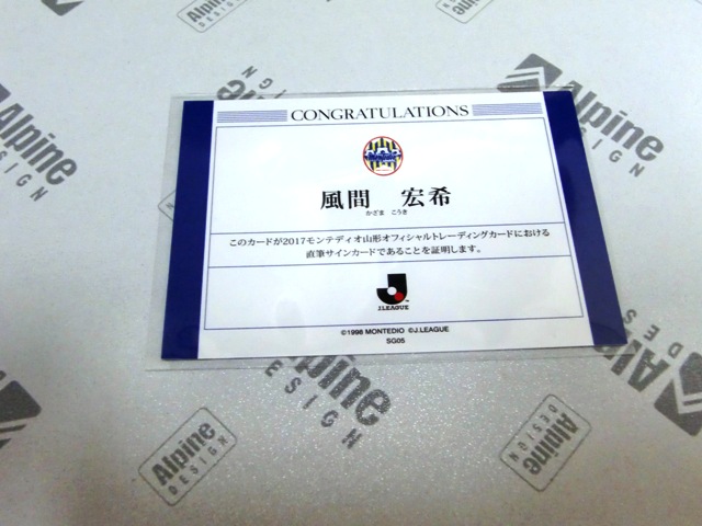 〇2017モンテディオ山形 風間宏希直筆サインカード SG05 川崎フロンターレ ギラヴァンツ北九州 ザスパクサツ群馬