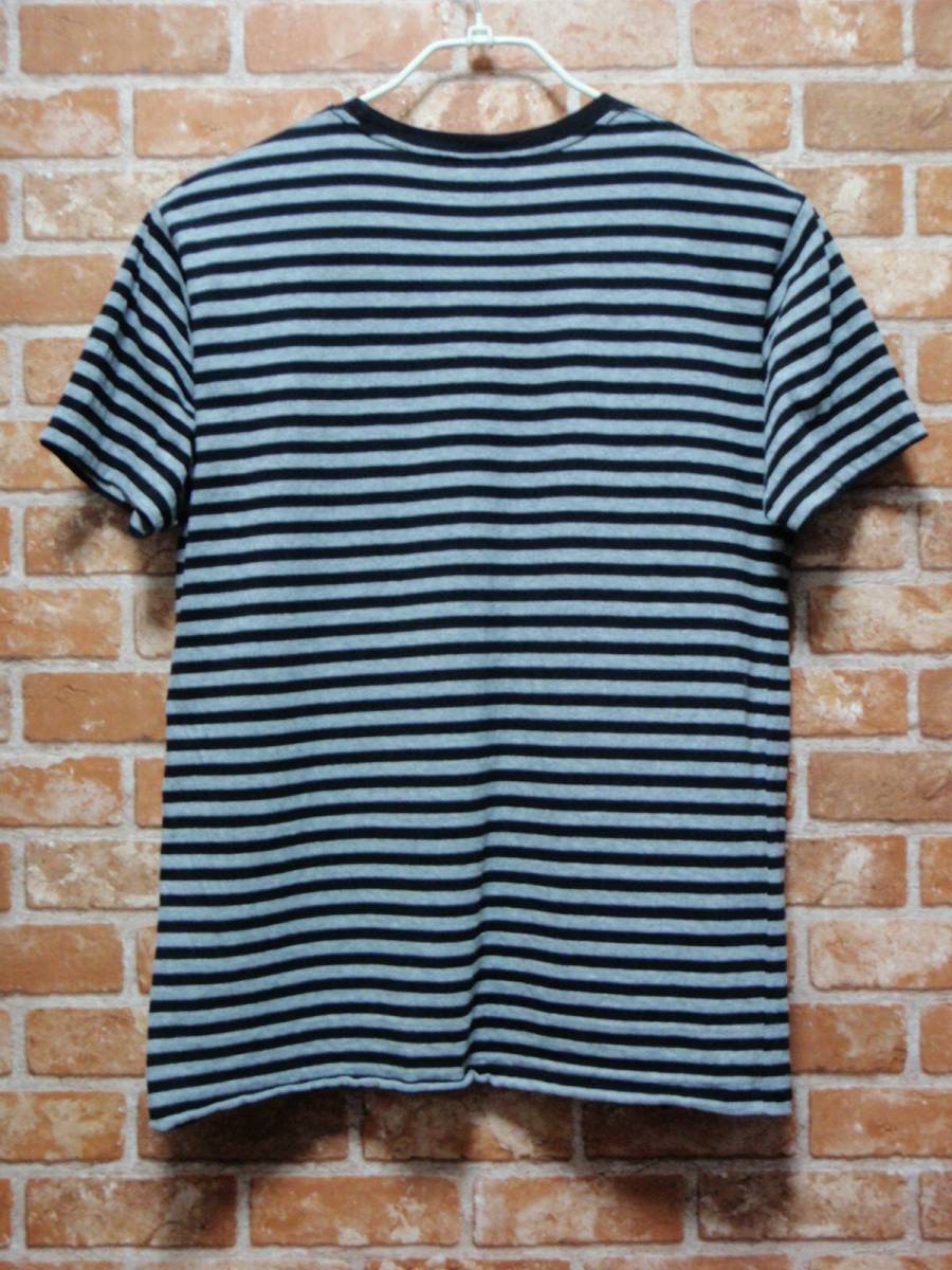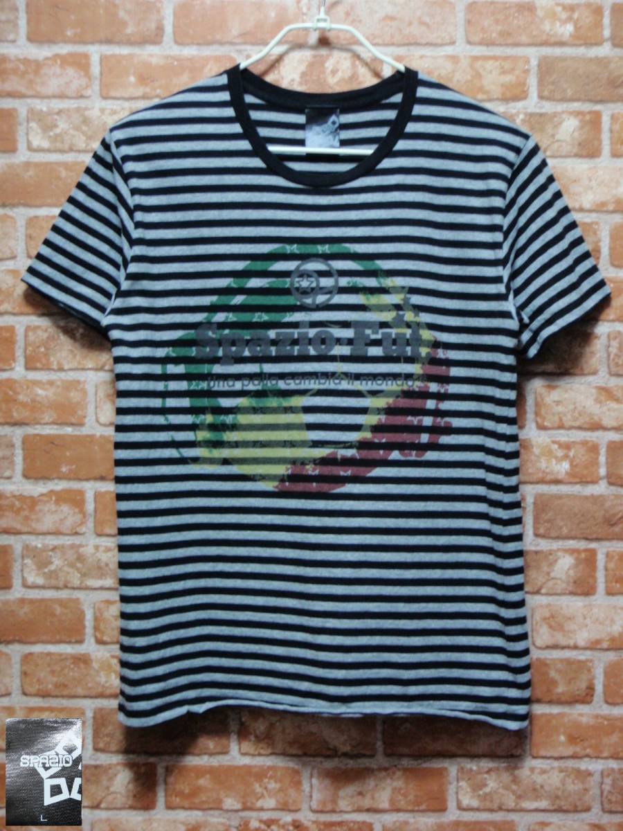 送料込・USED スパッツィオ SPAZIO ボーダー柄 ロゴプリント半袖Tシャツ Lサイズ