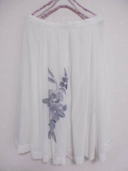 ★ 日本製ジョーゼットお洒落花模様スカート ★ オフホワイト(0627)