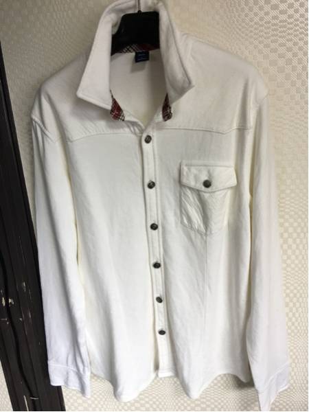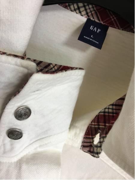 ギャップの少し厚手の長袖シャツジャケットです。サイズはL表記で平置き脇下身幅55着丈72肩幅49袖丈67センチ位です。袖口を折り返すとおしゃれな柄が入っています。