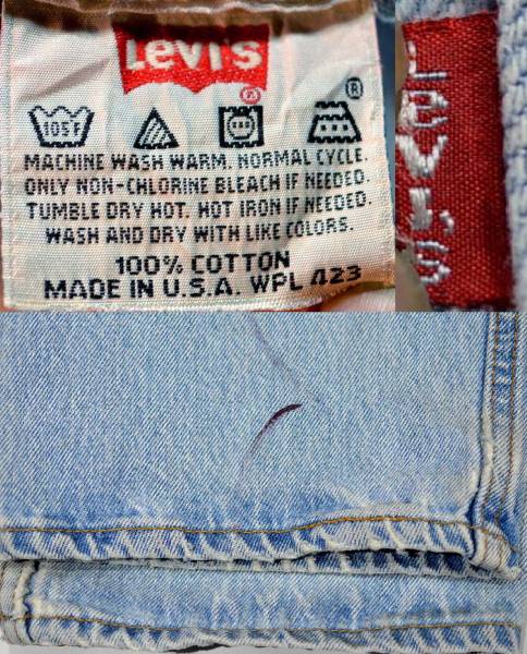 少し古いUSA製501です。『ディテール紹介』フロントトップボタン裏の刻印520、’94.11製造のアメリカ製です。タグはすべて英語表記で、リーバイスジャパンが輸入したものではなく、 アメリカ本国で販売されていたものです。『状態』全体にスレ、キズ、クラッシュ、ペンキ、リペアなどUSED感があります。『色落ち、特徴など』USA製501です。 フロントを中心にパープル系や白、黄色などのペンキが散っており、大変かっこいいジーンズです。クラッシュ系ジーンズがお好きな方に最適だと思います。