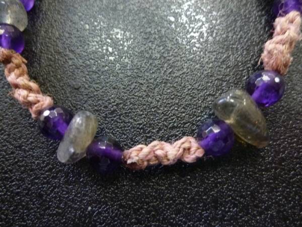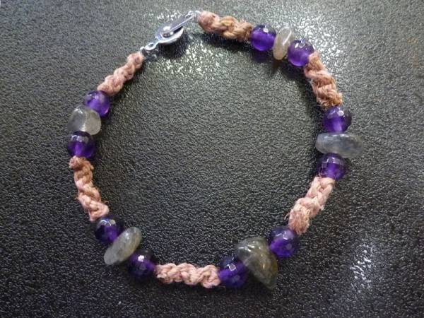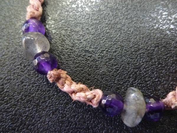 ラブラドライトタンブル アメジスト 手編み ブレスレット