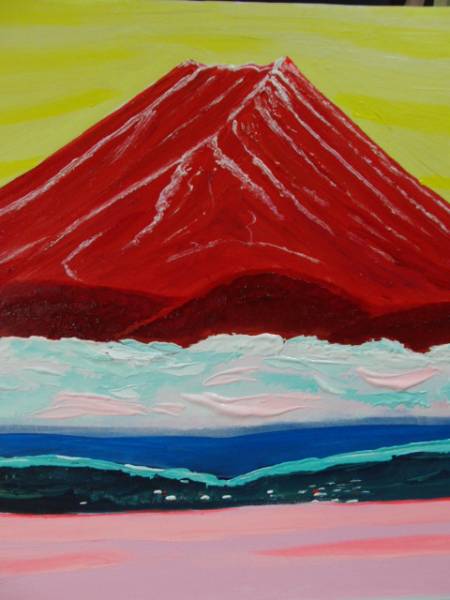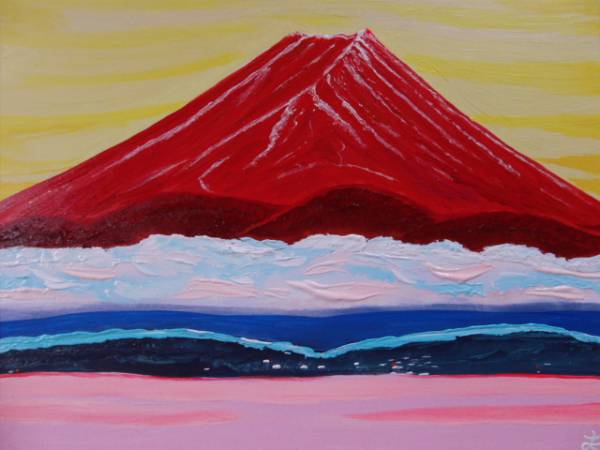 ≪国美協≫TOMOYUKI・友之、『赤富士・富士山』、油彩画・P15号:65,2×50cm、油絵一点物、新品高級油彩額付、直筆サイン・真作保証付