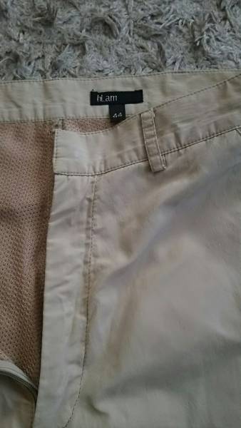 hlamの若干オイルドのナイロンとコットン素材のパンツです。