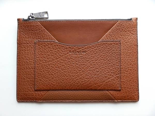 コーチ COACH メンズ ポーチ レザー 小物入れ 茶色 ブラウン パッチワーク クラッチバッグ おしゃれ ファッション 新品