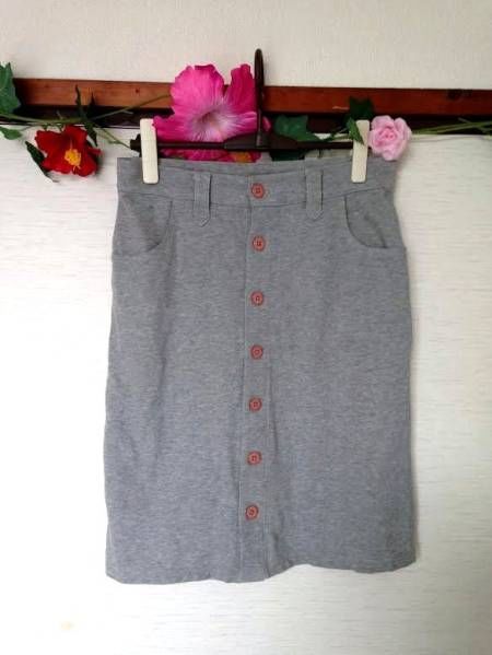 ローリーズファーム◆グレー ひざ丈 タイト コットン スカート Mサイズ