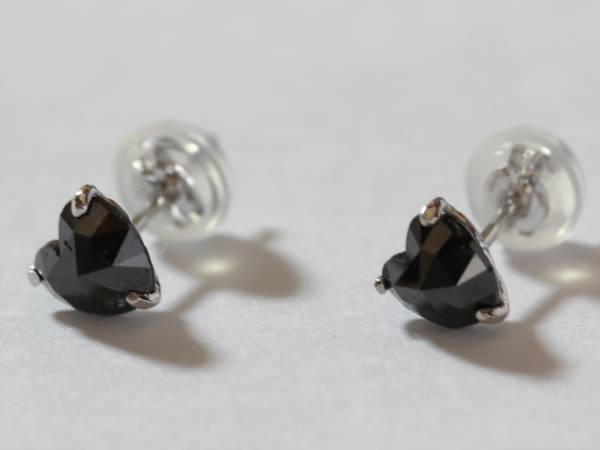 ★★☆ WGK18 ブラックダイア ハートピアス0.90ct (新品/送料無料)☆★★