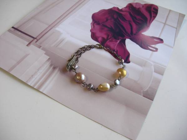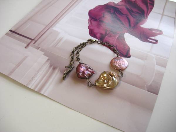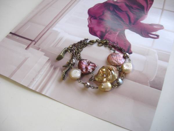 ルーズ・シルエット・・シリーズです♪バロック・パールに恋して・・個性的なバロックの淡水パールのブレスレット2本セットです♪単品でも重ねても楽しんで いただけます ♪存在感のあるパール なのでシンプルなデザインに仕立てました♪♪真ん中のブレスレットは20ミリから25ミリ位までのコインや楕円形のバロックの淡水パールです♪デザイン チェーンを合わせてシックな表情です♪長さは23センチ位で調節自由です♪右側のブレスレットは6ミリから14ミリ位の大きさ違いのバロックパールをラン ダムに繋ぎました♪長さ は23センチ位で調節自由です♪お揃いのシリーズも出品しています♪ハンドメイドを ご理解頂いてノークレーム、ノーリターンでお願いします