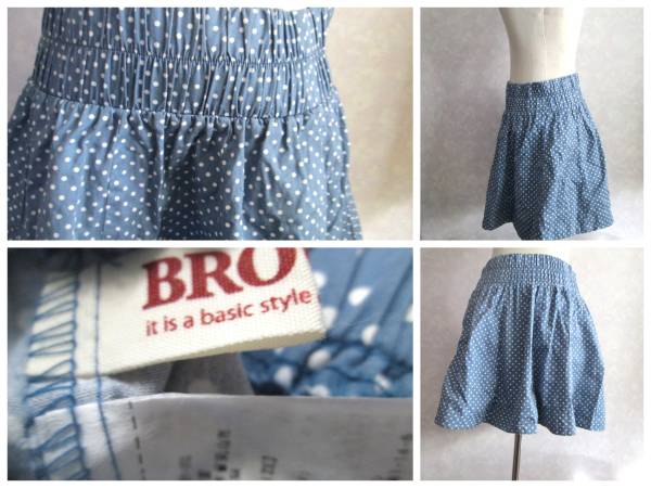 BROWNY  ウエスト幅広ゴム ドット柄夏のギャザースカート t