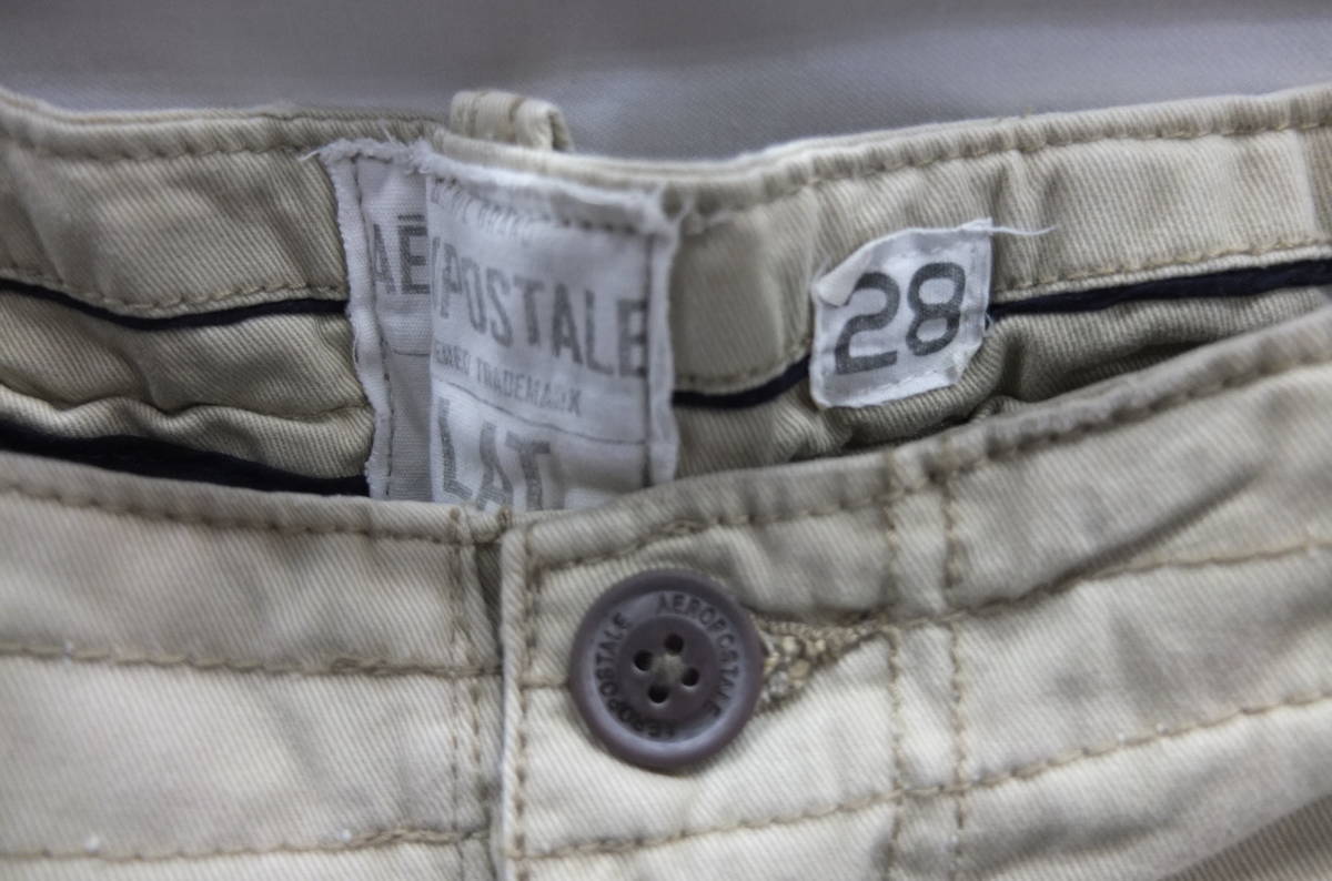 ★送料割引!ショートパンツ ゴルフパンツ ダメージツイル綿布 W28実寸約79cm ベイジ系カーキ AEROPOSTALE★OUTLET未使用格安!