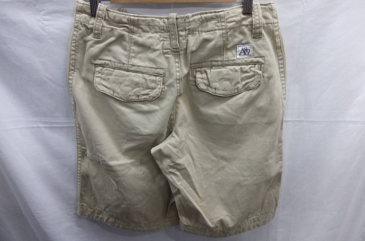 ★OUTLET格安!W28実寸約79cmベイジ系カーキ★米国AEROPOSTALEダメージツイル綿布ショートパンツ★