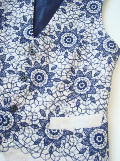 Bevilacqua イタリア製リネンベスト sizeS ジレ 刺繍 ベヴィラクア ベビラクア 春夏 花柄