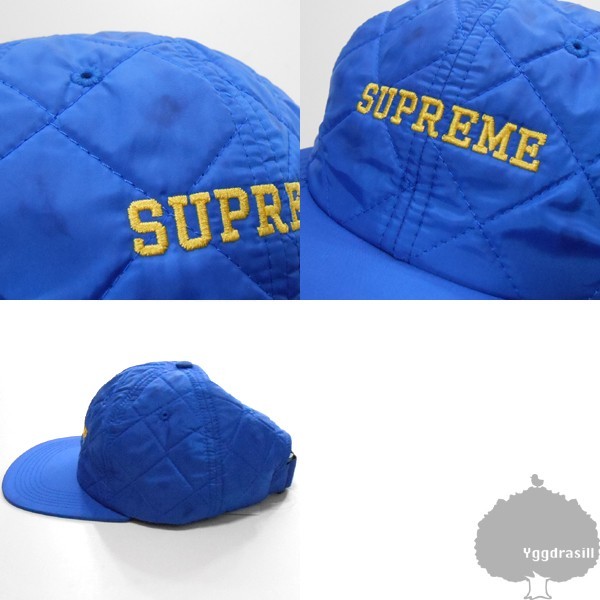 商品名:YGG★本物 Supreme シュプリーム キルティング 平つば帽 帽子 キャップ 青 サテン