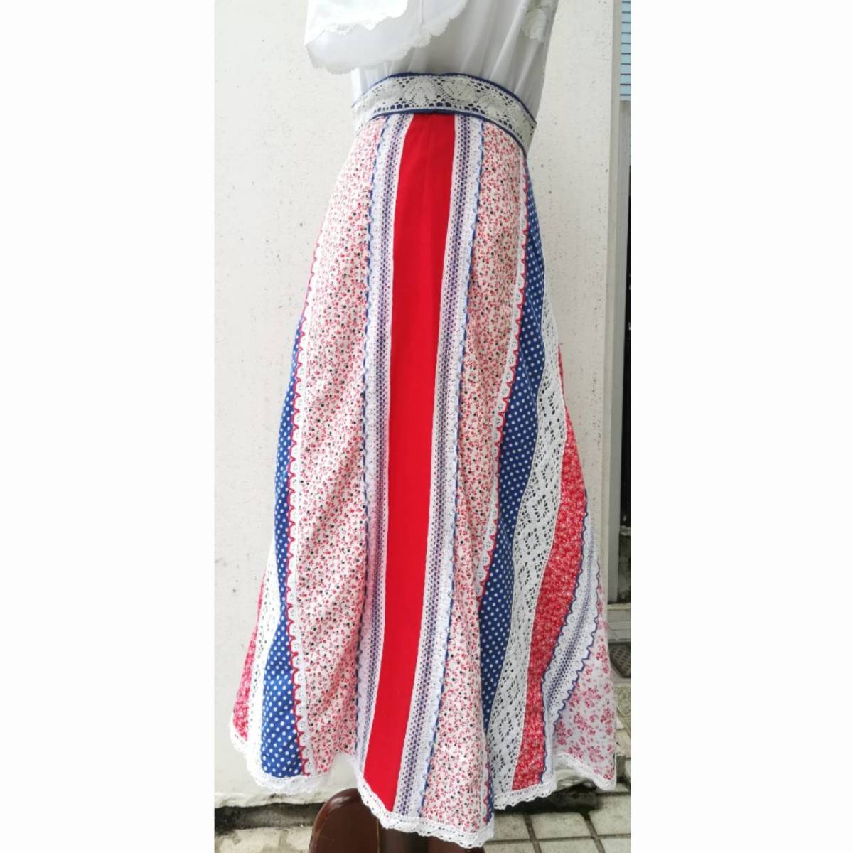 ヨーロッパ古着 パッチワーク フレアスカート