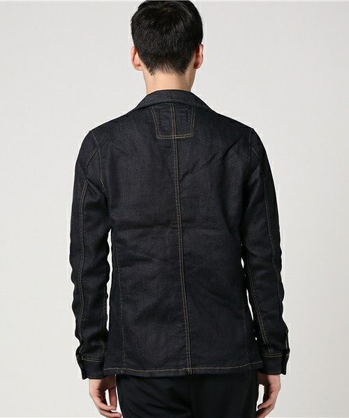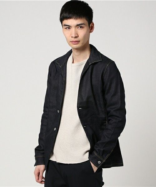 スウェット感覚で着こなせるストレッチ性のあるニットデニムを使用した2ボタンジャケット。