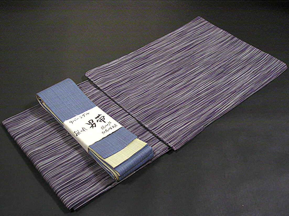 新品【御仕立上】正絹 男物米沢紬単衣着物(日本製)& リバーシブルおしゃれ角帯(紅の里工房)