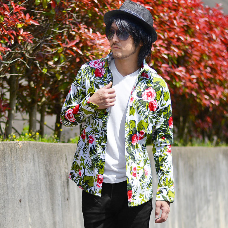 総柄/ボタニカル柄/花柄/襟ワイヤー/袖口ワイヤー/ガラシャツ