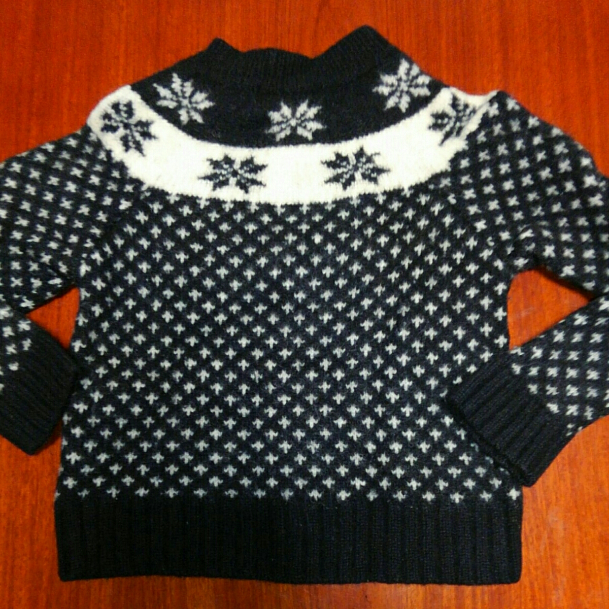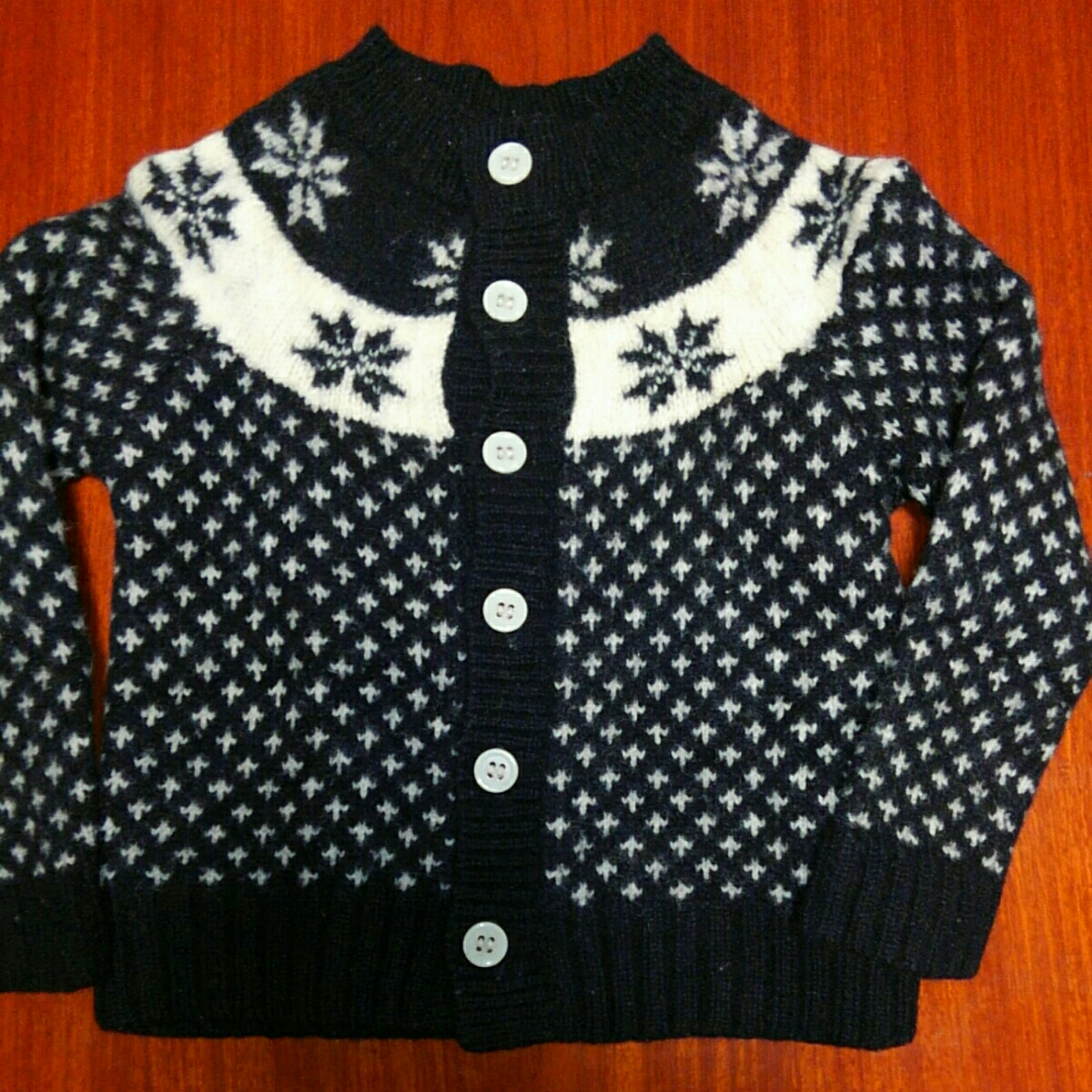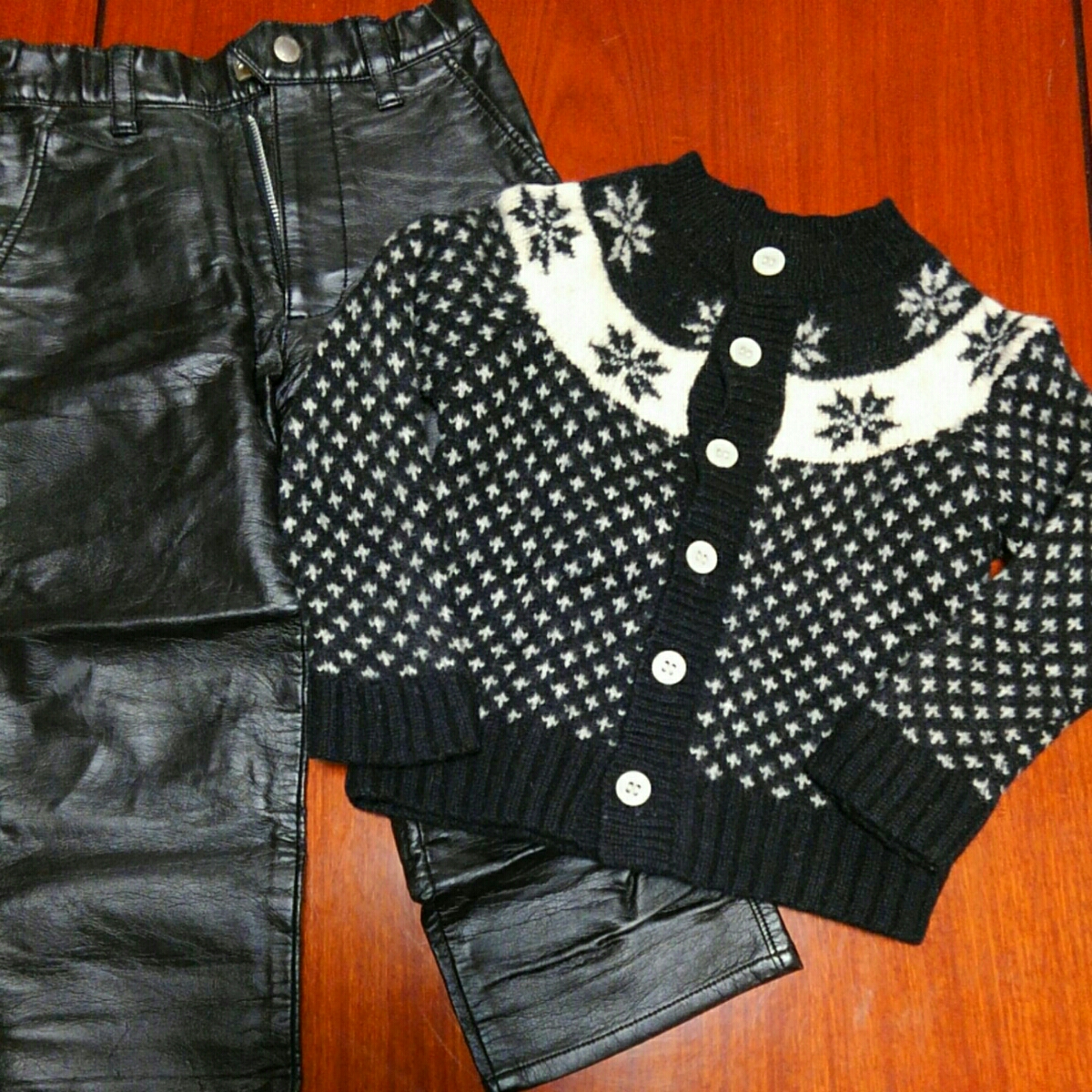 ・セーター:コムサデモード、サイズ100㎝(小さめなので90㎝相当です)、色は黒に白い模様、毛玉が若干ありますが状態は良い方だと思います。