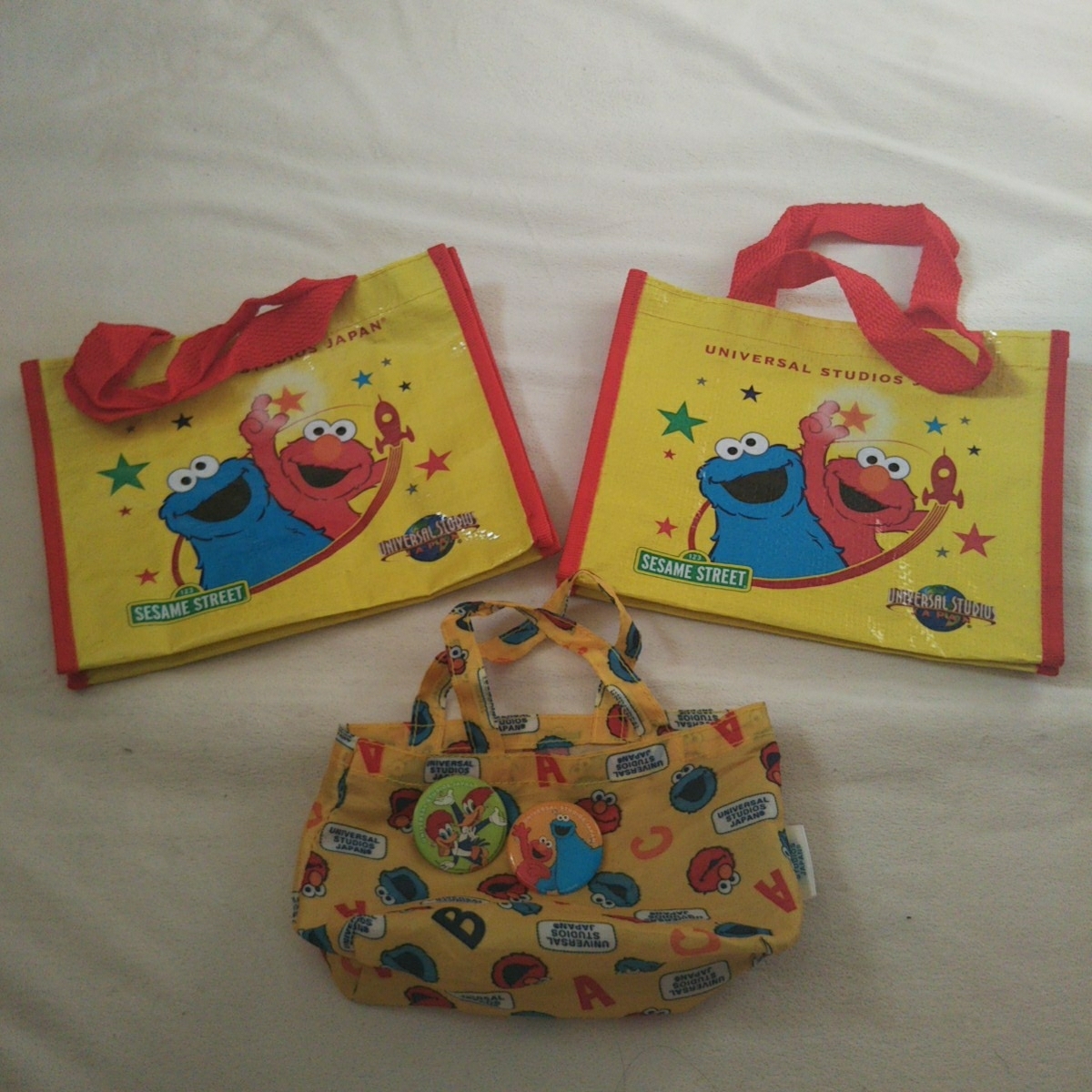 商品名 : 中古品ユニバ セサミストリート ミニバック三点セットバッチ付き