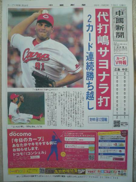 広島カープ V特報 11.7.31 代打嶋サヨナラ打 2カード連続勝ち越し