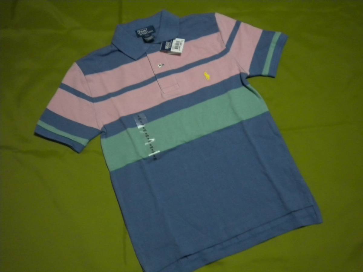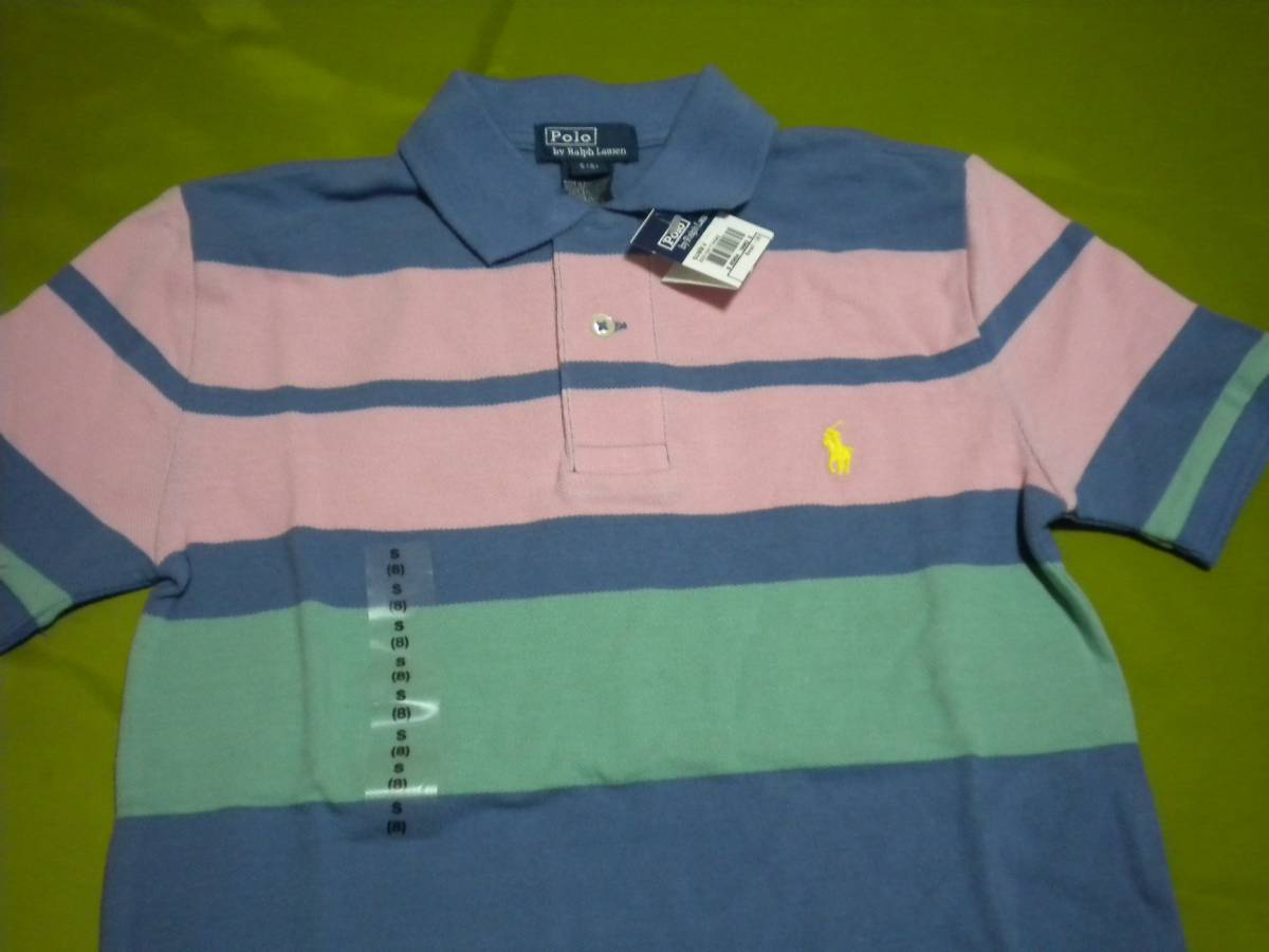 新品タグ付 ラルフローレンの半袖ポロシャツ 。サイズ:ボーイズサイズのS(8)。。海外のラルフ直営店での購入です。海外ボーイズサイズのS。8歳用です。日本サイズより大きめだと思います。実寸サイズを参考になさってくださいね。お洒落な色使いに胸元のポニーロゴ刺繍がアクセントとなった上品なデザインです。鹿の子素材ですのでこれからの季節にお勧めです。実寸肩幅:36㎝ 身幅:39.5㎝ 着丈:56.5㎝。 落札後のキャンセル 返品はお断り申し上げます。落札後に落札者様からのご連絡をお願いいたします。定型外発送、ゆうちょ銀行、三菱東京UFJ銀行へのお振込みも可能です。おそれいりますが、お振込みは落札日より金融機関の3営業日以内でお願い致します。