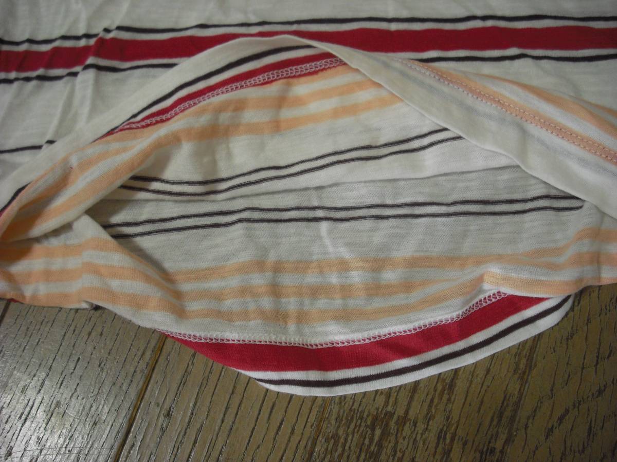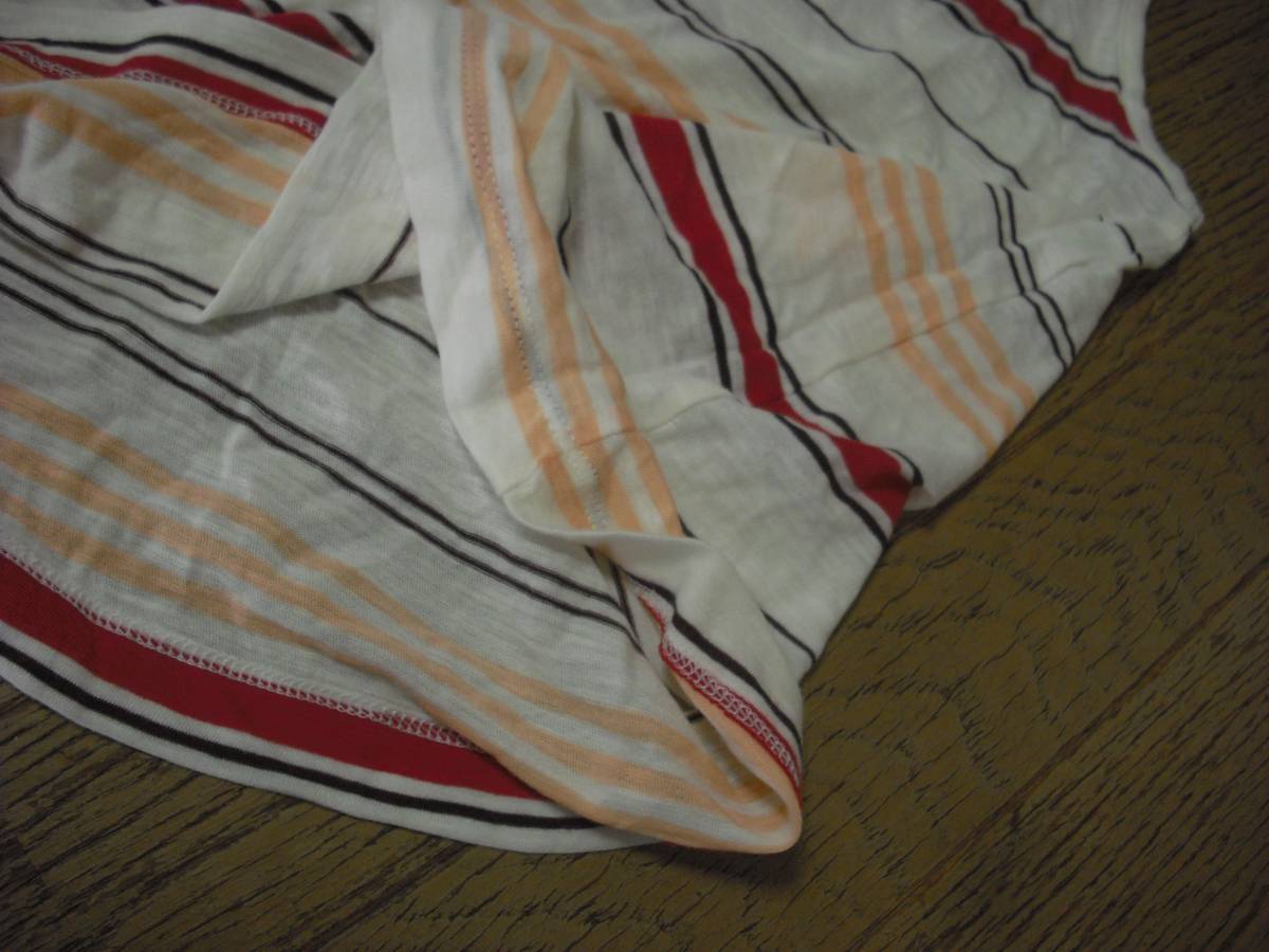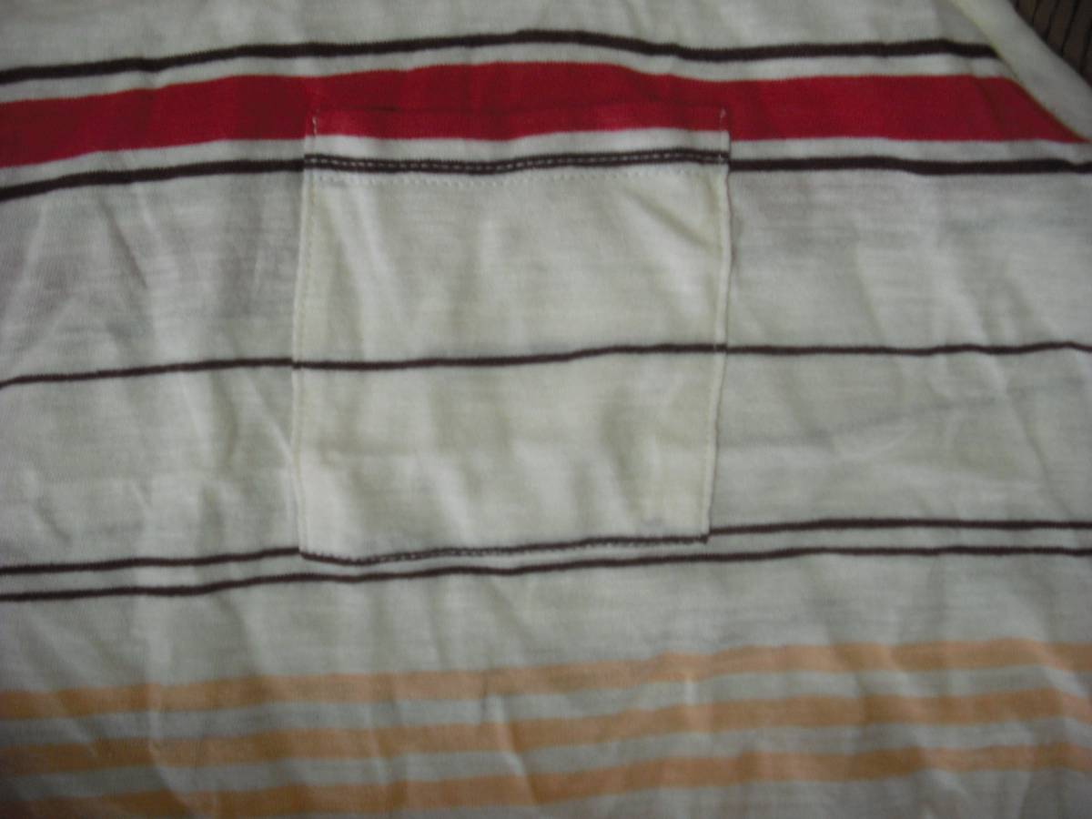 写真のようなシャツになります。 サイズはXXS 綿60% レーヨン40% MADE IN CAMBODIA おおまかですが・・・着丈52cm、身幅40cmくらいです。 写真の状態でメジャーで測っています。 私見ですが…お色はクリーム色っぽい生地にに赤、茶色、ピンクオレンジっぽい線が入った感じです。 保管中の汚れ、畳みジワ、経年劣化、他商品と触れあっているため糸クズの付着などございますし、中古であり、個人所有になりますので糸のほつれ、汚れやスレなどの痛みがある場合もございます。 現状でよろしくお願いします。 約67g 簡易包装の定形外郵便100gか、スマートレター、レターパックライトで発送予定です。 |