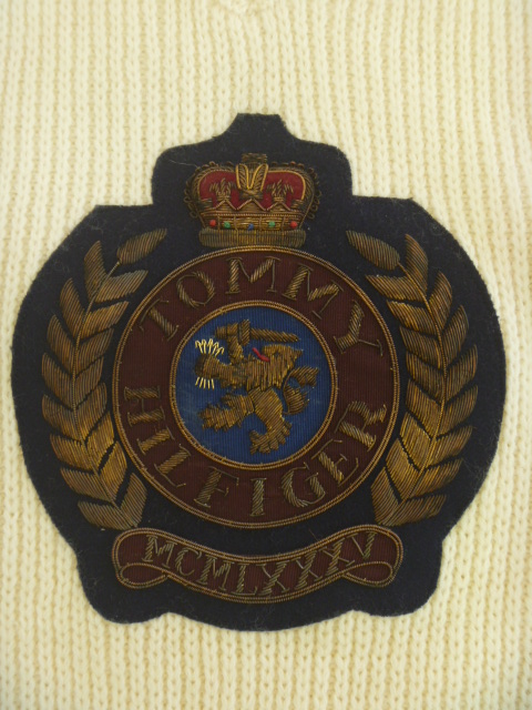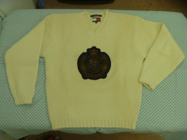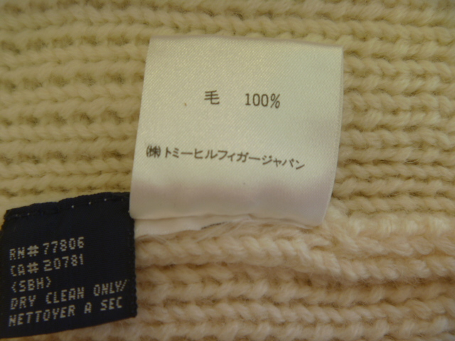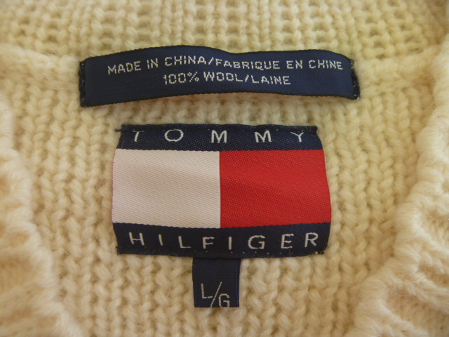 ●◇メンズ  【TOMMY  HILFIGER】 Vネックセーター  L/Gサイズ?  フロントにエンブレム  毛100%  オフホワイト?