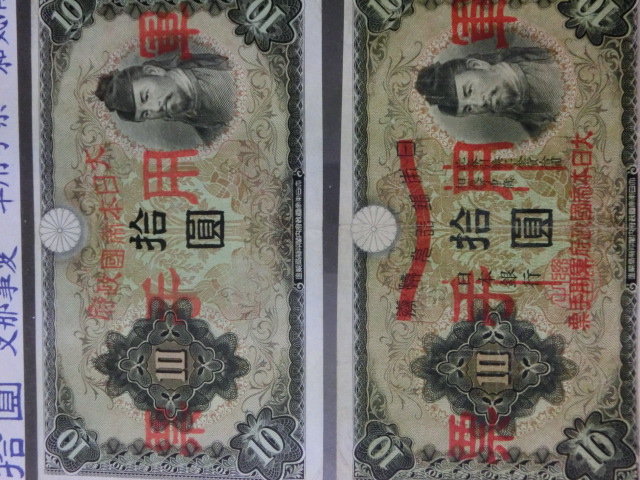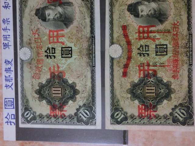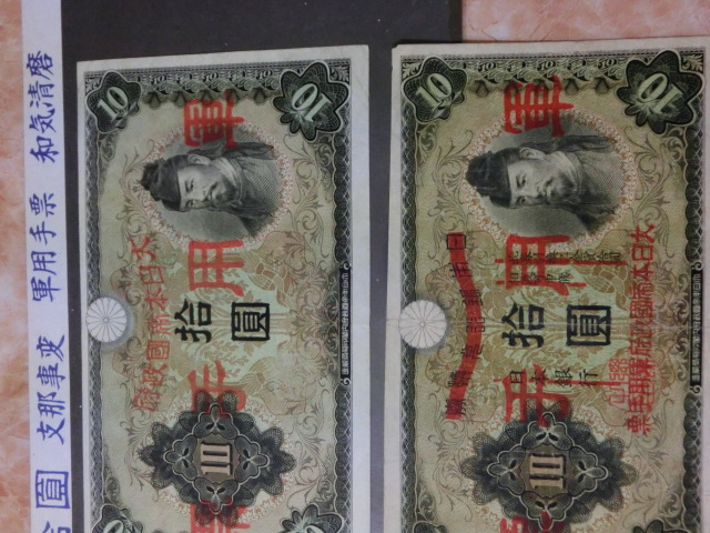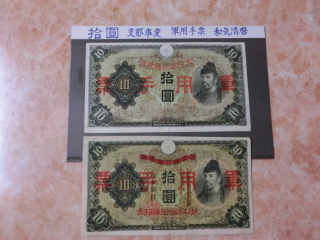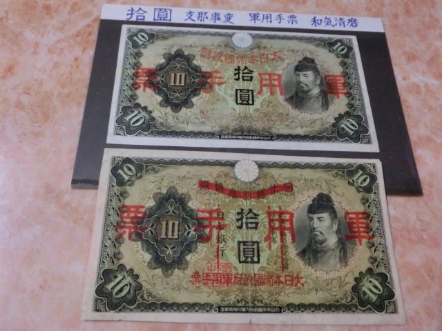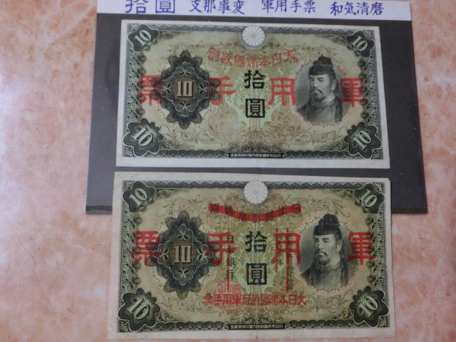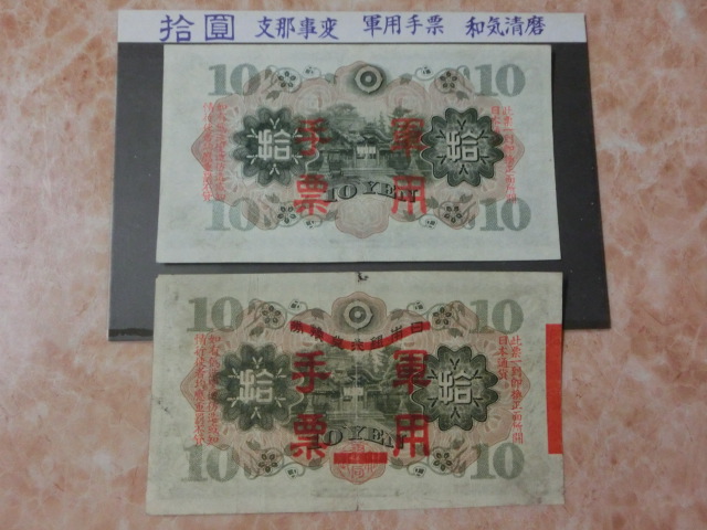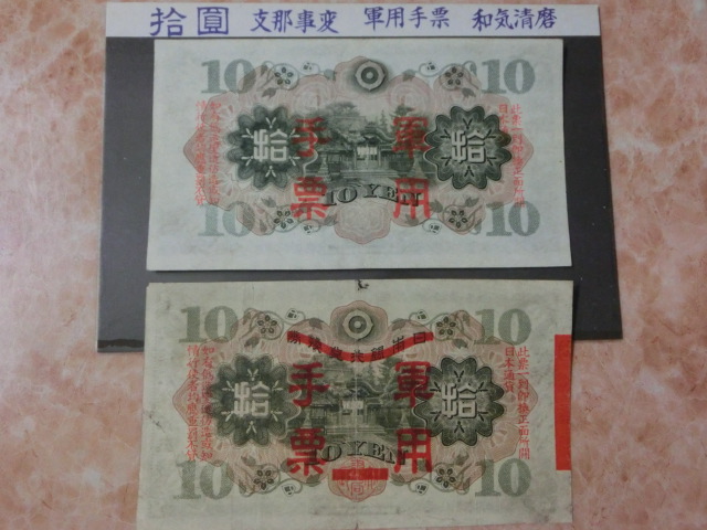 日華事変軍票 乙号10円・丙号10円の上美品を2種2枚セットです。