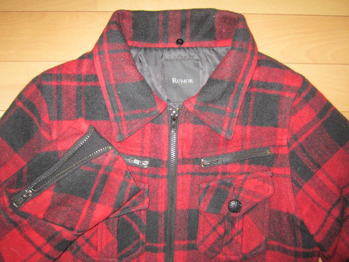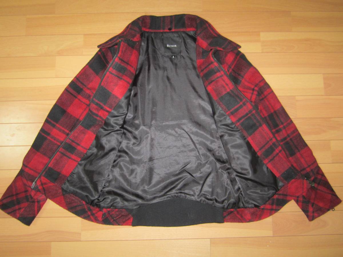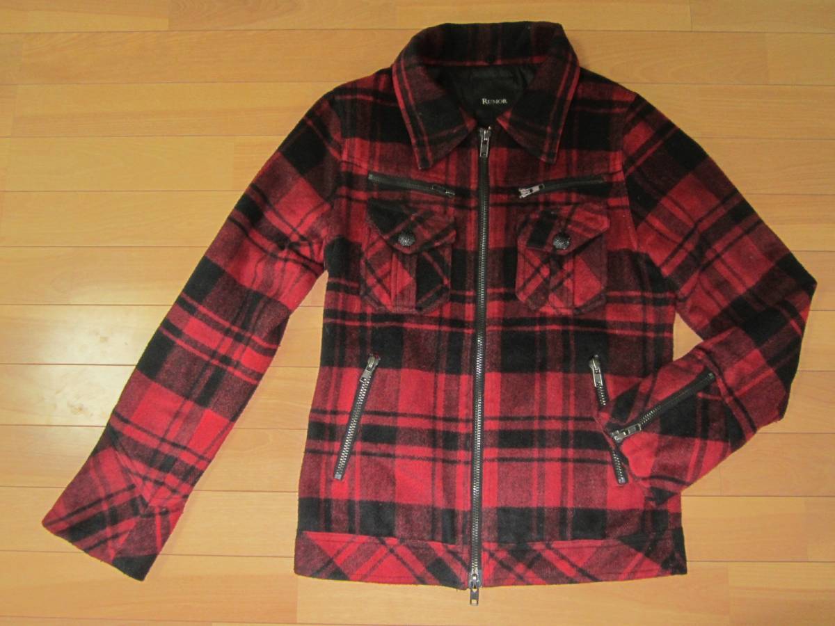 ★RUMOR 背面スカル刺繍 ダブルジップ チェックジャケット★赤黒sizeM★