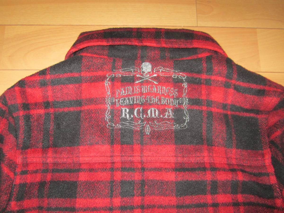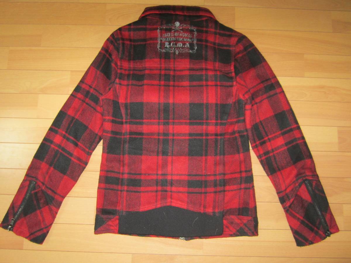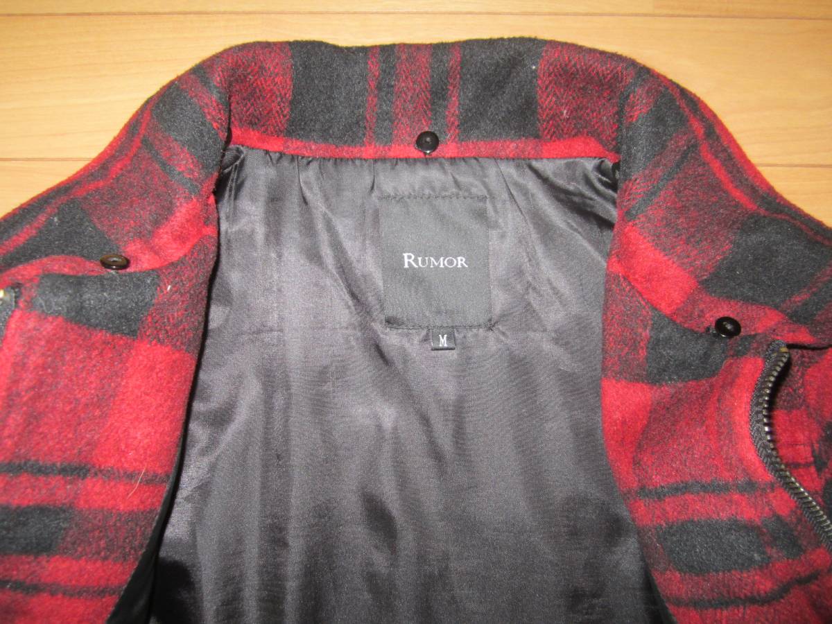 ★RUMOR 背面スカル刺繍 ダブルジップ チェックジャケット★赤黒sizeM★
