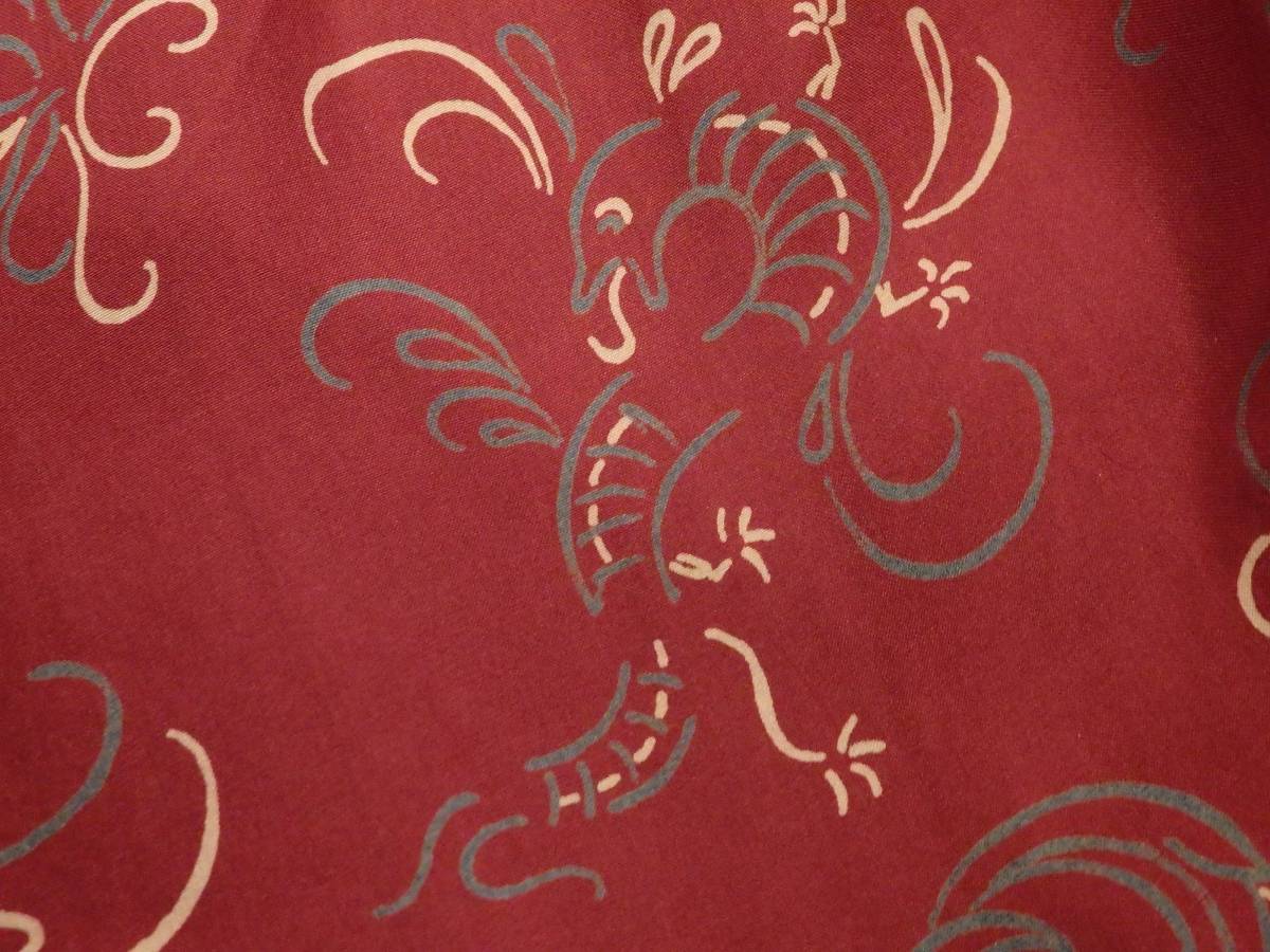 この時代の龍モチーフ物は人気がありますが、このようにユーモラスな表情の龍プリントは中々見かけません