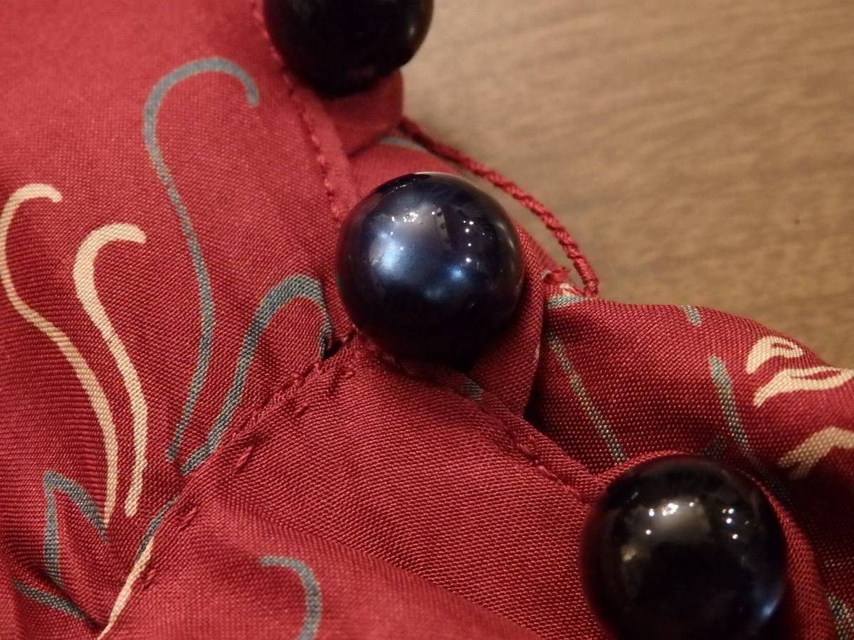 サイドのボタンも、素敵な球状の青マーブルボタンが使われています