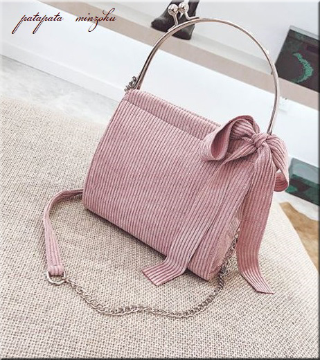 コーデュロイ ショルダーバッグ 2WAY ピンク パタミン バッグ 鞄 レディース ハンドバッグ