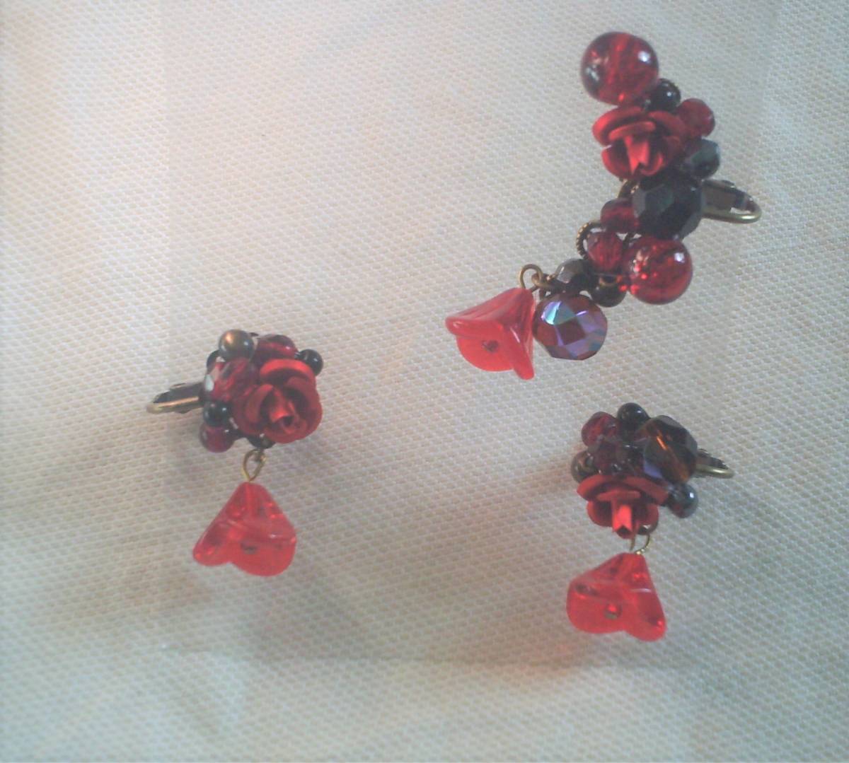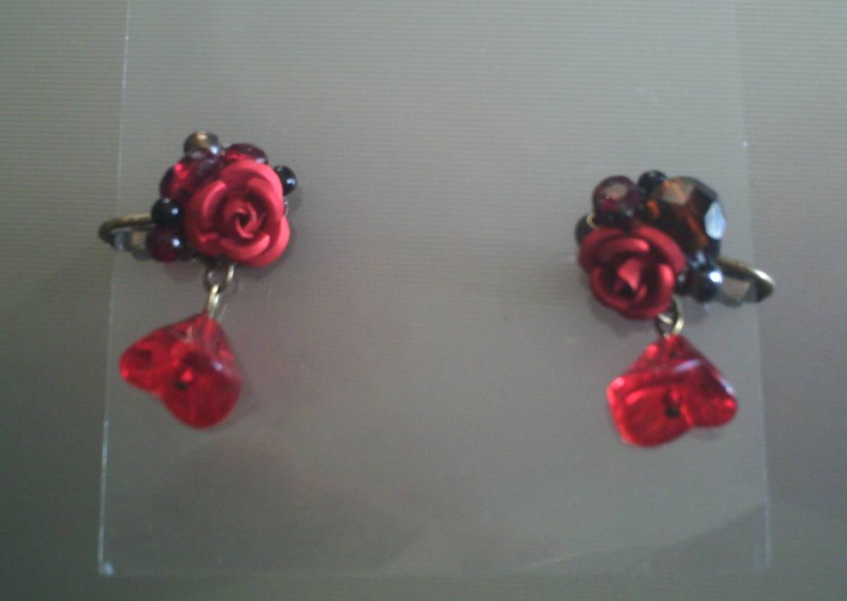 | ★★★★ハンドメイド バラとビジュー レッド&ブラック イヤーカフ 新品★★★ | |||