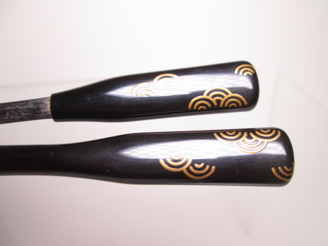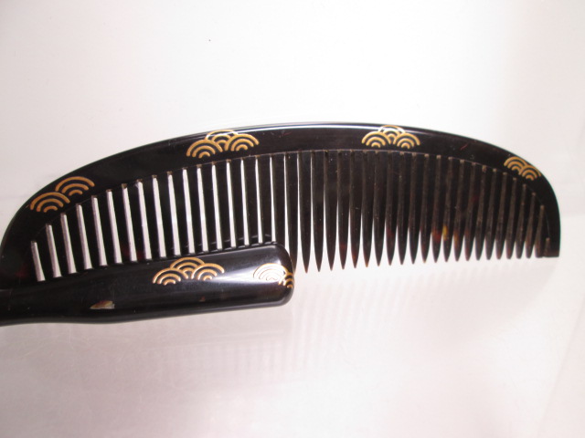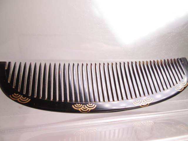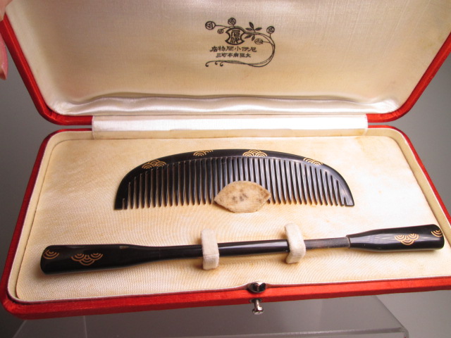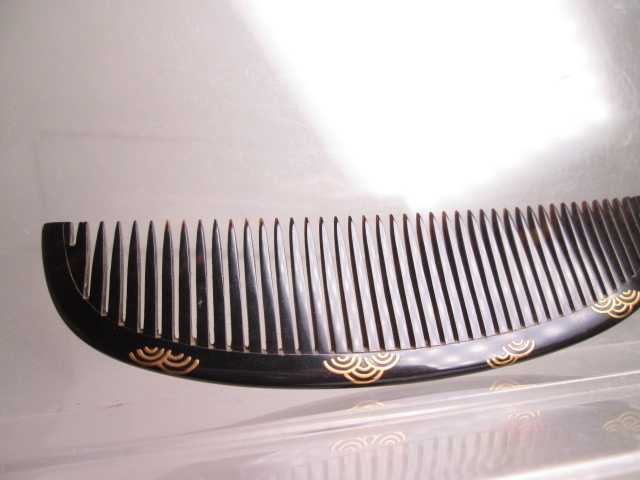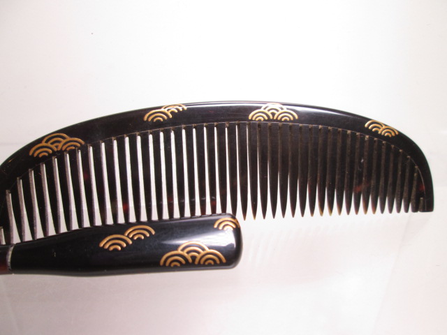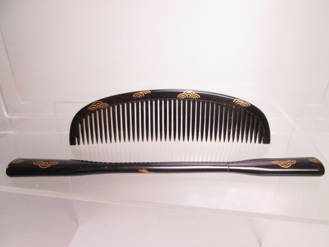 ☆アンティーク・尼伊 本鼈甲 波文金蒔絵の櫛&笄 共ケース付