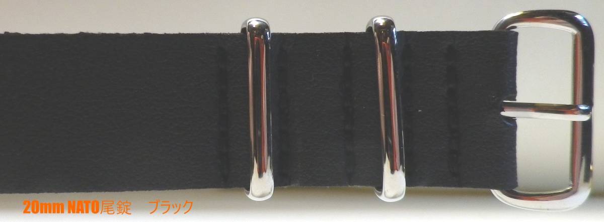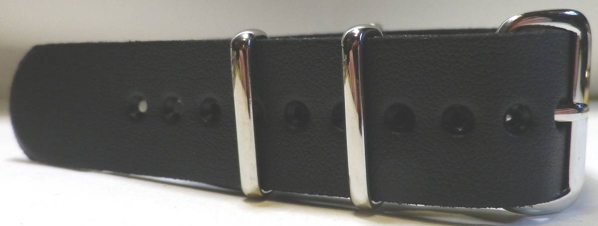 20MM NATO ミリタリー尾錠 PU革 ベルト新品 黒 LONG