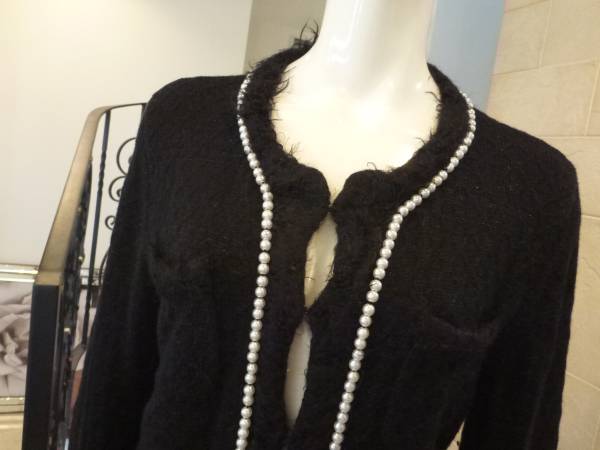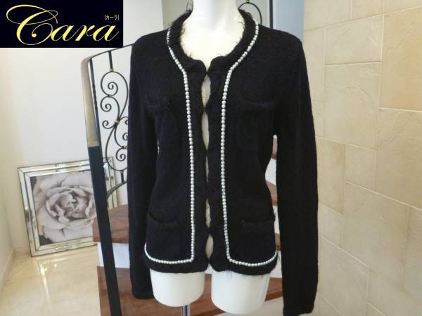 美品 Cara(カーラ)黒パール付き ニット ジャケット