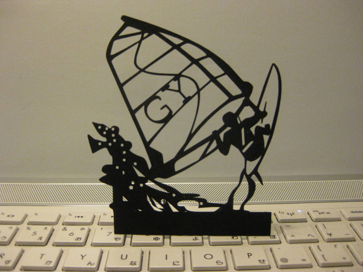 立つ切り絵 ウインドサーフィン レース中 壁飾りにも