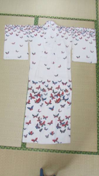 大きさは、肩から下まで・156センチ、袖の長さ・53センチ、左右の袖の端まで・129センチ、肩幅・62センチ程です。