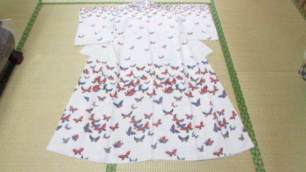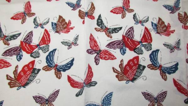 1000円値引き(旧家・蔵出し)(古布・縮緬地・蝶模様着物)貴重珍品