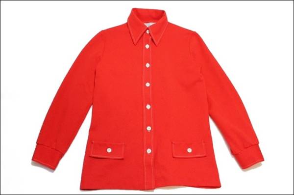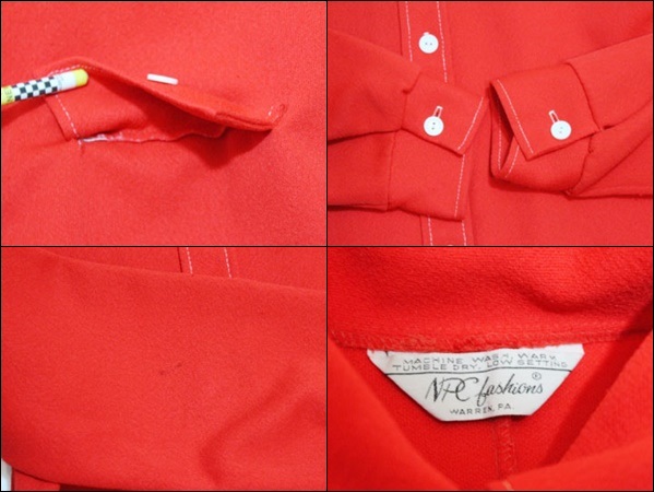 70's NPC Fashions 長袖 シャツ ジャケット 赤 無地 レディース アンティーク ビンテージ ヴィンテージ USA 古着 オールド GD284