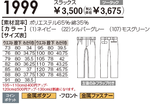 新品☆SOWA スラックス 作業ズボン 73~130 ワーキング (1999)