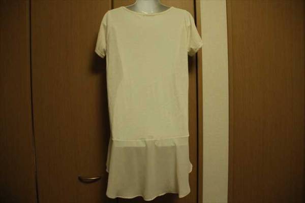 ★新品タグ無!裾シフォンイレギュラーワンピチュニオフ白系М★ | ||||