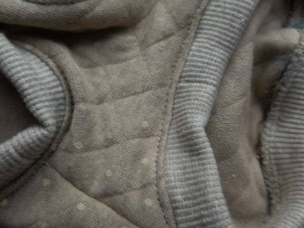 家庭用ミシンで作っているため、ニットの毛羽立ちがあります。