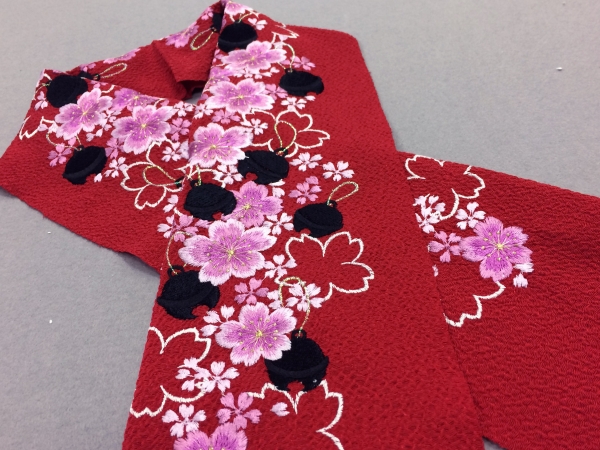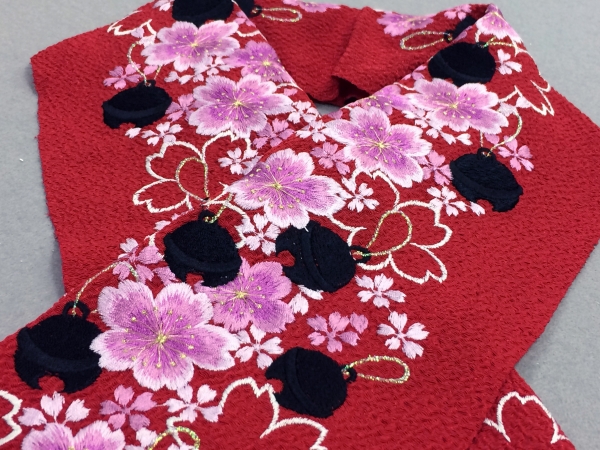 限定入荷!振袖に◆ちりめん豪華刺繍半衿【桜・赤】#
