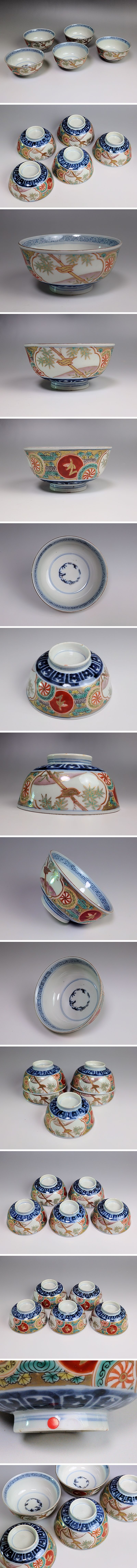 ★華心★ BBt-A507 古伊万里 色絵 竹に雀図 向付 5客